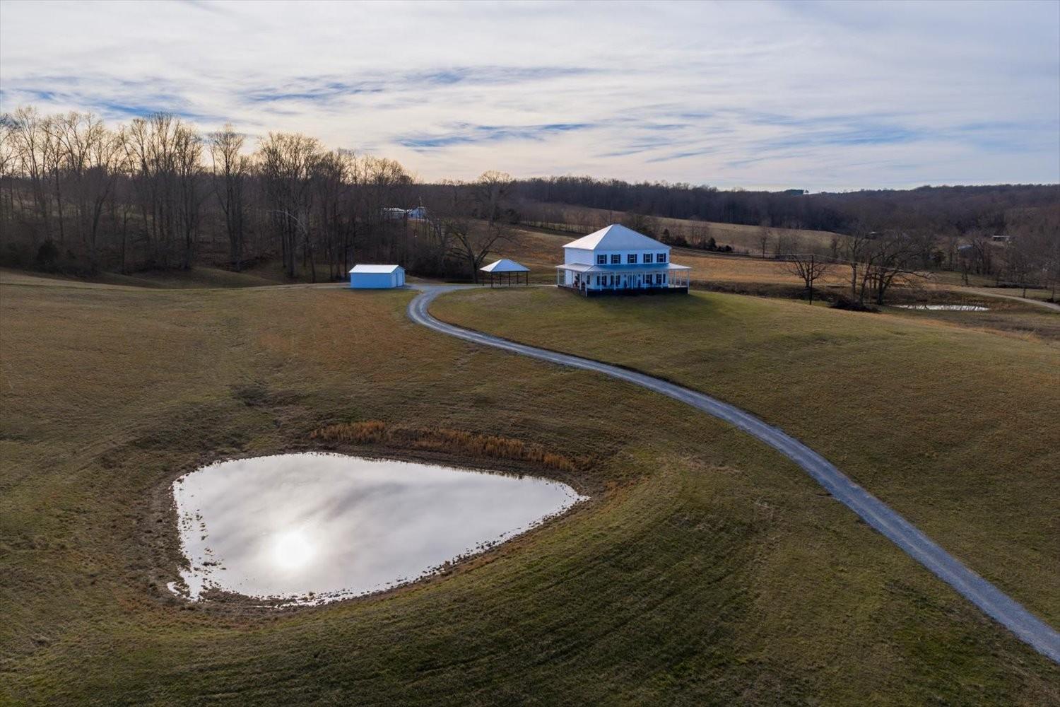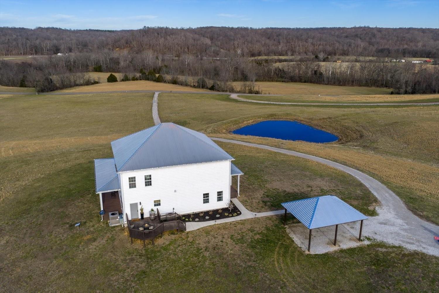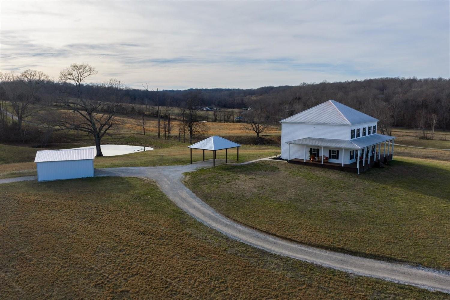 First time to view: SATURDAY FEB 21st PUBLIC OPEN HOUSE 1-4pm Escape the city and enjoy unparalleled sunrise and sunset views from the wrap around porch of this classy custom farmhouse located at 185 Thompson Road. Embrace country living and take in the rolling hills of Dickson County. At the heart of this 11.67 acre property sits a custom-built 3520 sq ft farmhouse built in 2021 plus 2 ponds. This warm and inviting home offers spacious rooms, tons of storage closets, gorgeous hardwoods,10ft ceilings on main level and dedicated office space. A large open kitchen featuring quartz countertops with under cabinet lighting, large island, double oven and built in microwave, massive dreamy walk in pantry plus a dedicated space for your morning expresso bar. This peaceful country sanctuary has it all. Come and see for yourself!
