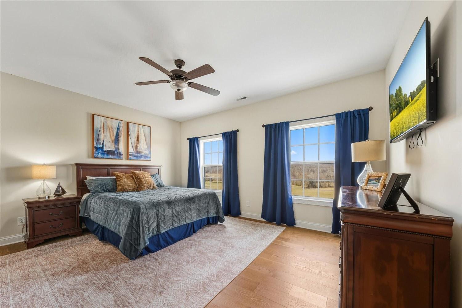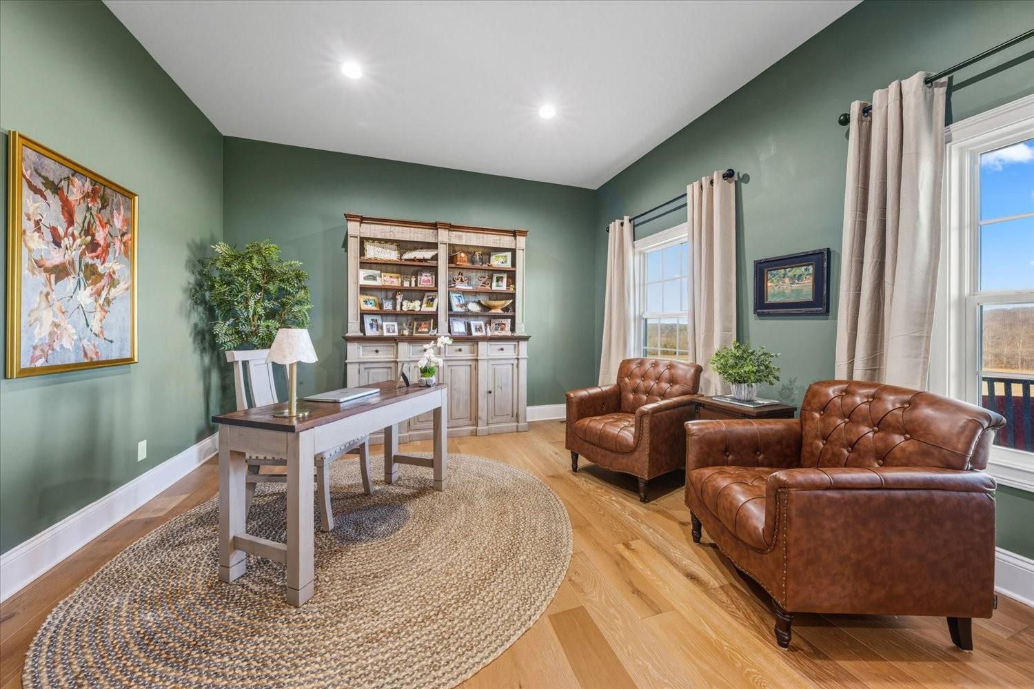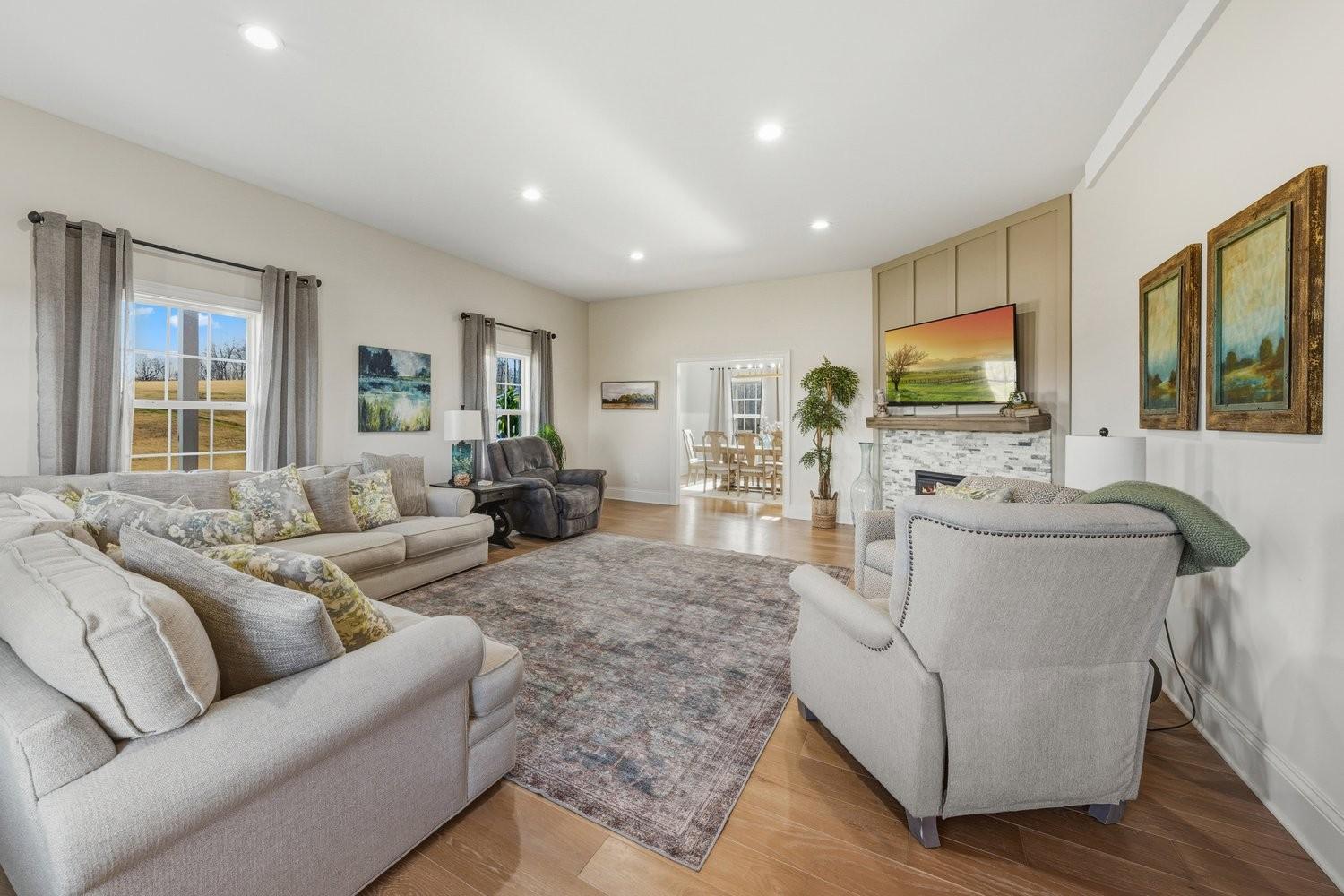 First time to view: SATURDAY FEB 21st PUBLIC OPEN HOUSE 1-4pm Escape the city and enjoy unparalleled sunrise and sunset views from the wrap around porch of this classy custom farmhouse located at 185 Thompson Road. Embrace country living and take in the rolling hills of Dickson County. At the heart of this 11.67 acre property sits a custom-built 3520 sq ft farmhouse built in 2021 plus 2 ponds. This warm and inviting home offers spacious rooms, tons of storage closets, gorgeous hardwoods,10ft ceilings on main level and dedicated office space. A large open kitchen featuring quartz countertops with under cabinet lighting, large island, double oven and built in microwave, massive dreamy walk in pantry plus a dedicated space for your morning expresso bar. This peaceful country sanctuary has it all. Come and see for yourself!